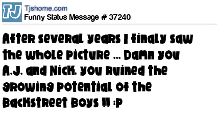 X is After several years I finaly saw the whole picture ... Damn you A.J. and Nick, you ruined the growing potential of the Backstreet Boys !! :p