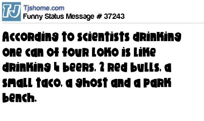 X According to scientists drinking one can of four loko is like drinking 4 beers, 2 red bulls, a small taco, a ghost and a park bench.