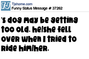 X 's dog may be getting too old. he/she fell over when I tried to ride him/her.