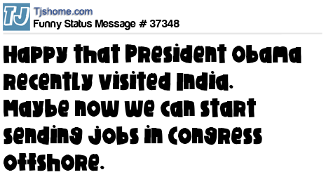 X is happy that President Obama recently visited India. Maybe now we can start sending jobs in Congress offshore.