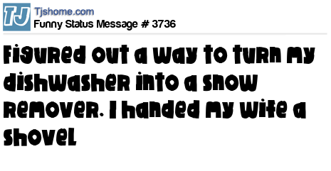 - # 35984 converted my dishwasher into a snowblower: bought the wife a new snow shovel for her birthday!