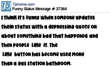 X I think it's funny when someone updates their status with a depressing quote or about something bad that happened, and then people “like” it. The “like” button has become used more than a gas station bathroom.