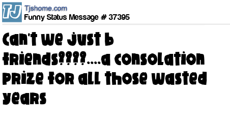 - # 88795 When someone says: "We can still be friends" what they really mean is: "I'm not interested. Here's a consolation prize for all those wasted years."