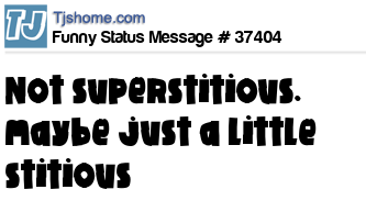 - # 85673 I'm not superstitious. Stitious, yes, but not in a heightened sense. I am, however, super lazy sometimes.