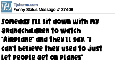 X says someday I'll sit down with my grandchildren to watch "Airplane" and they'll say, "I can't believe they used to just let people get on planes"