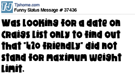 X is was looking for a date on Craigs list only to find out that "420 friendly" did not stand for maximum weight limit.