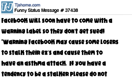X says Facebook will soon have to come with a warning label so they don't get sued! "Warning Facebook may cause some losers to stalk their ex's and cause them to have an asthma attack. If you have a tendency to be a stalker please do not use Facebook!"