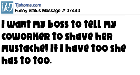 X says I want my boss to tell my coworker to shave her mustache! If I have too she has to too.