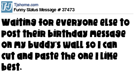 X is waiting for everyone else to post their birthday message on my buddy's wall so I can cut and paste the one I like best.