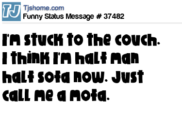 X I'm stuck to the couch. I think I'm half man half sofa now. Just call me a mofa.