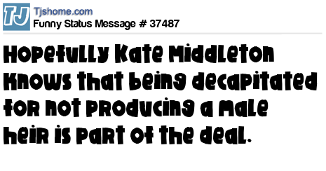 X Hopefully Kate Middleton knows that being decapitated for not producing a male heir is part of the deal.