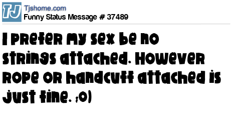 X I prefer my sex be no strings attached. However rope or handcuff attached is just fine. ;0)