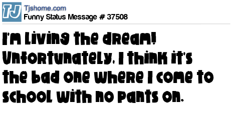 X I'm living the dream! Unfortunately, I think it's the bad one where I come to school with no pants on.