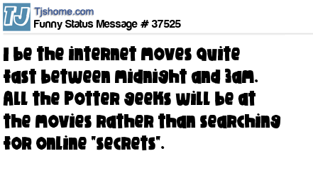 - # 64278 saw Harry Potter at midnight last night. LOL JK, I have a life.