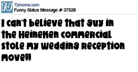 X says I can't believe that guy in the Heineken commercial stole my wedding reception move!!