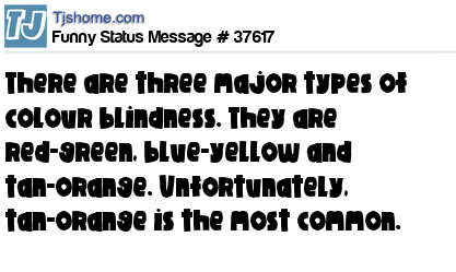 X There are three major types of colour blindness. They are red-green, blue-yellow and tan-orange. Unfortunately, tan-orange is the most common.