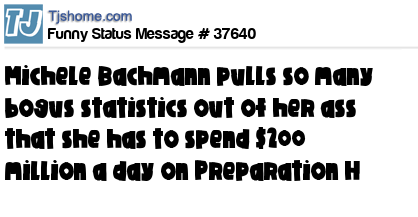 X says Michele Bachmann pulls so many bogus statistics out of her ass that she has to spend $200 million a day on Preparation H