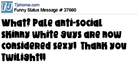 X is What? Pale anti-social skinny white guys are now considered sexy! Thank you Twilight!!