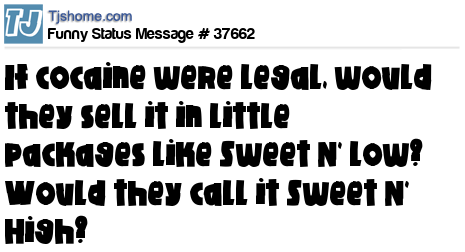 X If cocaine were legal, would they sell it in little packages like Sweet N' Low? Would they call it Sweet N' High?
