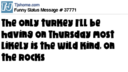 X is The only turkey I'll be having on Thursday most likely is the wild kind, on the rocks