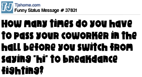 X How many times do you have to pass your coworker in the hall before you switch from saying "hi" to breakdance fighting?