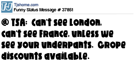 X @ TSA: Can't see London, can't see France, unless we see your underpants. Grope discounts available.