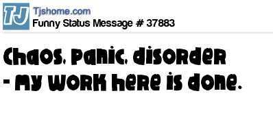 - # 16555 Chaos, panic and disorder. My work here is done.