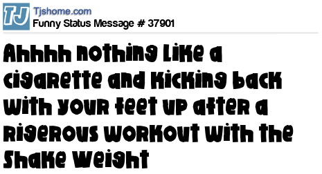 X says Ahhhh nothing like a cigarette and kicking back with your feet up after a rigerous workout with the Shake Weight