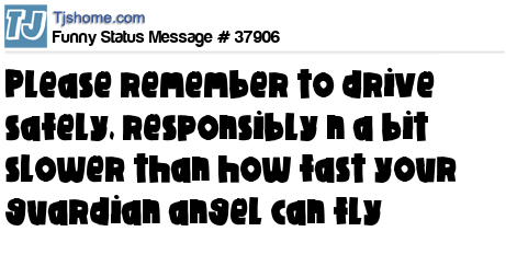X says please remember to drive safely, responsibly n a bit slower than how fast your guardian angel can fly