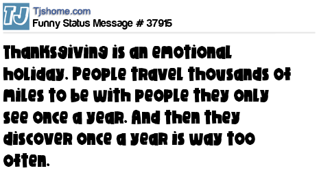 X Thanksgiving is an emotional holiday. People travel thousands of miles to be with people they only see once a year. And then they discover once a year is way too often.