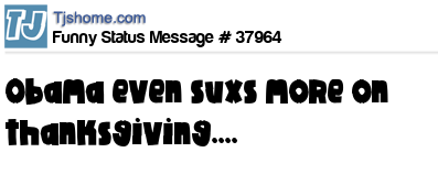 - # 172849 Being know as a instigator, I'm gonna add "Being thankful we survived Obama' to the thanksgiving blessing just to get the fun going.