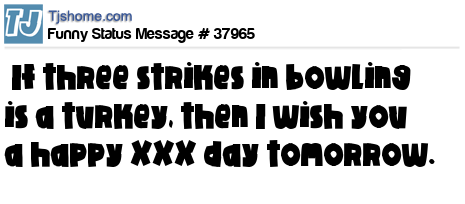X If three strikes in bowling is a turkey, then I wish you a happy XXX day tomorrow.
