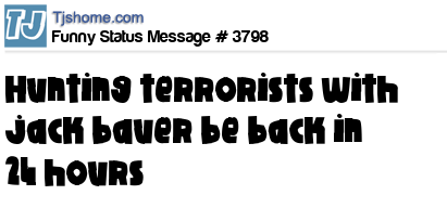 - # 55391 Too effin bad that Jack Bauer doesn't work for US govt. He would've caught hold of Laden in 24 hours!