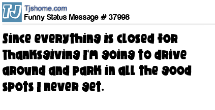 X Since everything is closed for Thanksgiving I'm going to drive around and park in all the good spots I never get.
