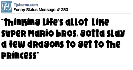- # 463 "life is just like Mario brothers, you have to slay a few dragons to get to the princess"