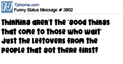 - # 28412 Aren't the "good things that come to those who wait" really just leftovers from people who got there first?