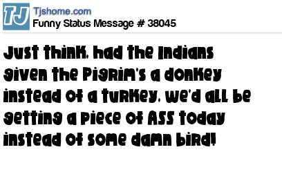- # 80609 If only the Indians had given the Pilgrims donkey on Thanksgiving. We'd all be getting some ass today.