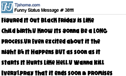 X has Figured It Out Black Friday is Like Child birth,U know Its gonna Be a LONG process,Ur Even excited about it the night B4 It Happens BUT as soon as it starts It Hurts Like Hell,U Wanna Kill Every1,pray that it ends soon & promises to never 2 do it again