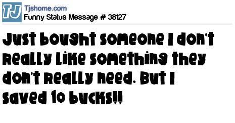 X Just bought someone I don't really like something they don't really need. But I saved 10 bucks!!