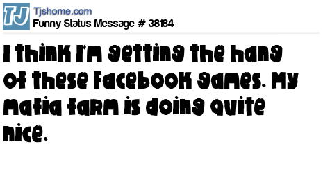 - # 20266 What is it with Facebook games like Mafia and Farmville. I guess people need to balance their murder and violence with beets and little lost sheep.