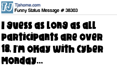 X I guess as long as all participants are over 18, I'm okay with Cyber Monday...