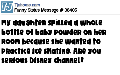 X  My daughter spilled a whole bottle of baby powder on her room because she wanted to practice ice skating. Are you serious Disney channel?