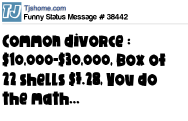 X says Common divorce : $10,000-$30,000, Box of 22 shells $7.28, You do the math...