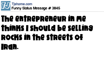 X says the entrepreneur in me thinks I should be selling rocks in the streets of Iran.