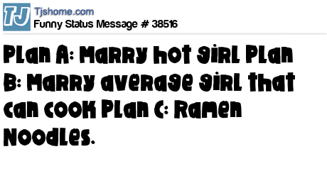 X Plan A: Marry hot girl Plan B: Marry average girl that can cook Plan C: Ramen Noodles.