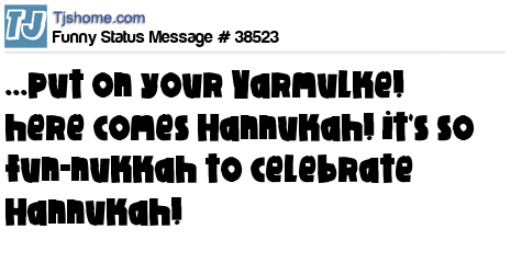 X says ...put on your Yarmulke! here comes Hannukah! it's so fun-nukkah to celebrate Hannukah!