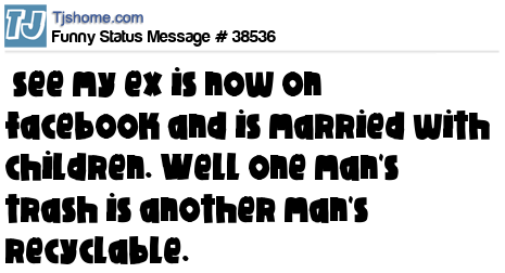 X see my ex is now on facebook and is married with children. Well one man's trash is another man's recyclable.