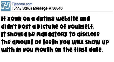 X If your on a dating website and didn't post a picture of yourself. It should be mandatory to disclose the amount of teeth you will show up with in you mouth on the first date.