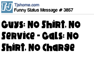 - # 15371 Guys: No Shirt, No Service - Gals: No Shirt, No Charge