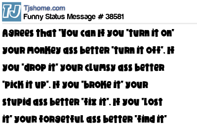 X is Agrees that "You can If you "turn it on" your monkey ass better "turn it off". If you "drop it" your clumsy ass better "pick it up". If you "broke it" your stupid ass better "fix it". If you "lost it" your forgetful ass better "find it"